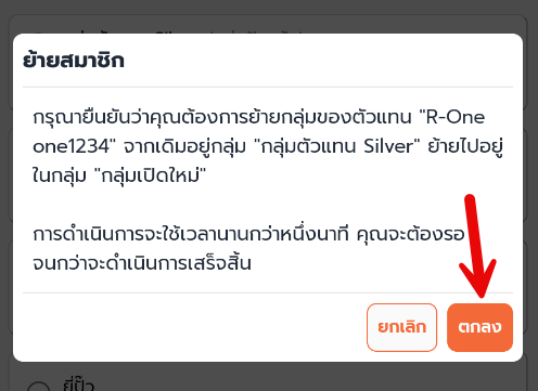 6. กด ตกลง หรือ ยกเลิก การย้ายสมาชิก