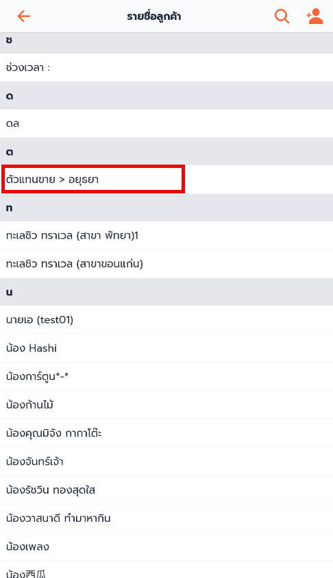 2. เลือก ชื่อลูกค้าที่ต้องใช้งาน หรือ กดที่ + เพื่อเพิ่มข้อมูลผู้รับ