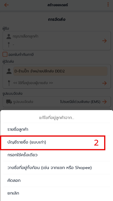 1. รายชื่อลูกค้า (บันทึกไว้ใช้ซ้ำแบบเก่า) สามารถนำข้อมูลผู้รับมาใช้ซ้ำได้แต่ใช้ได้เฉพาะร้านของตนเองไม่รวมกับยูสเซอร์ผู้ช่วยร้าน