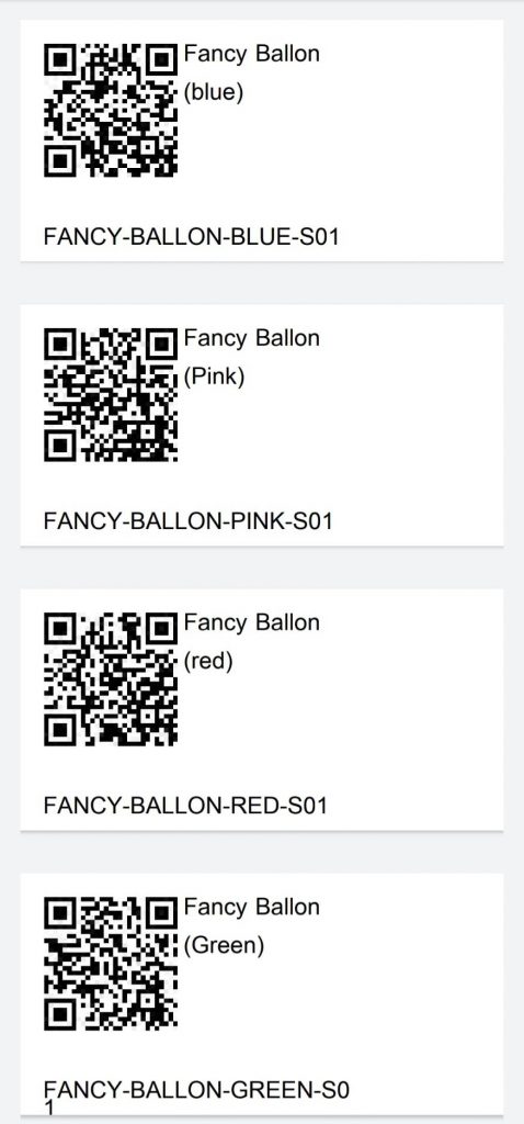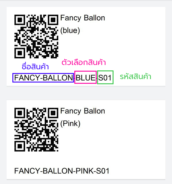 ** ใน1หน้ากระดาษที่แสดงรูปคิวอาร์โค้ด จะแสดงสินค้า 1ตัว แต่หลายตัวเลือก
