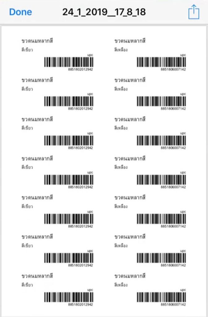 ตัวอย่าง การพิมพ์ บาร์โค้ด UPC แบบชุด (ขนาดกระดาษพิมพ์ คือ A4)