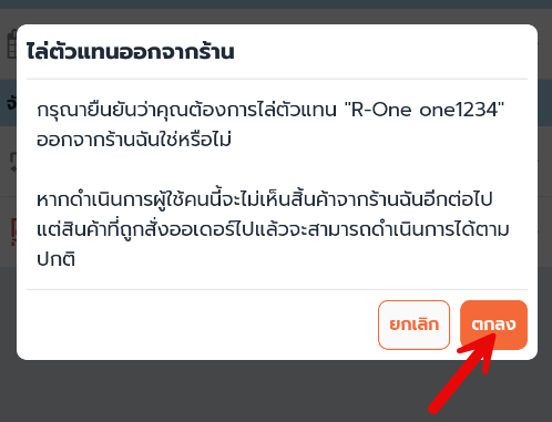 5. กด ยืนยัน การลบตัวแทนออกจากร้าน