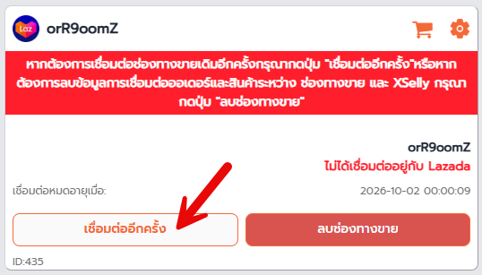 1. หน้า รายการ ช่องทางขาย กดปุ่ม เชื่อมต่ออีกครั้ง