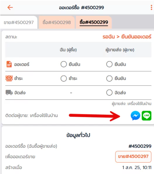 ตัวอย่างหน้า Order ที่ตัวแทน(ผู้ซื้อ) ตั้งค่าแชทไว้