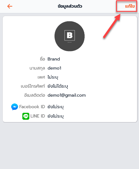 2. กรอก FB Messenger ID และ LINE ID จากนั้นกด บันทึก
