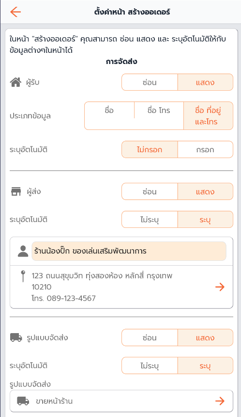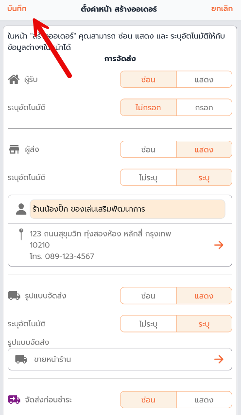 1. ปรับการตั้งค่าการแสดงผลหน้าสร้างออเดอร์ ตามต้องการ และกด “บันทึก”