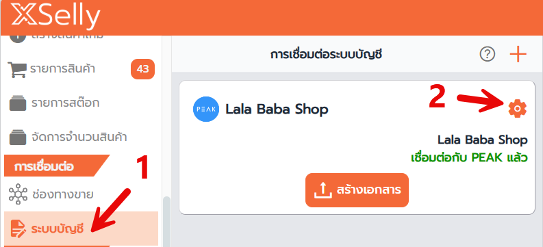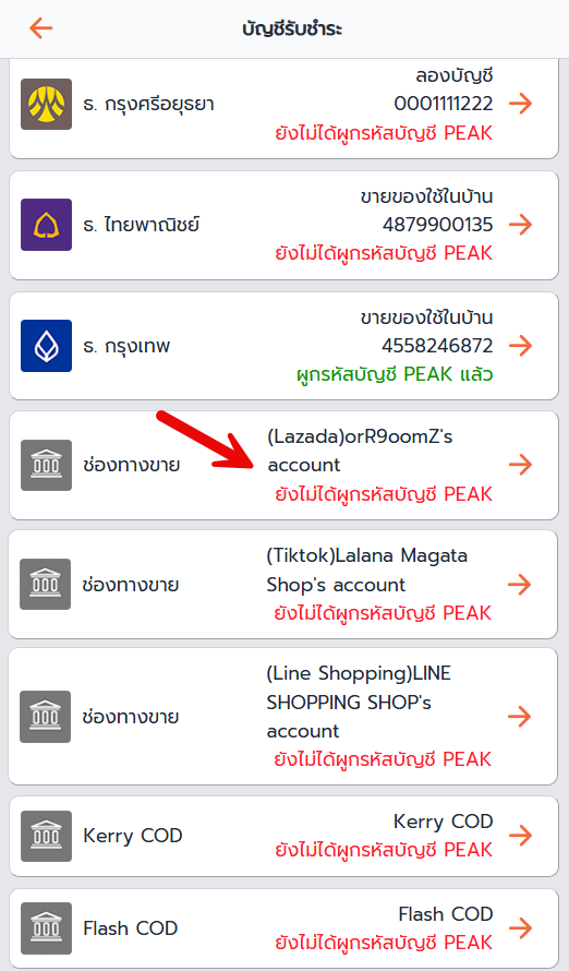 ถ้าขึ้นข้อความสีแดงว่า ยังไม่ได้ผูกรหัสบัญชี PEAK ให้กดเข้าไปตั้งค่า