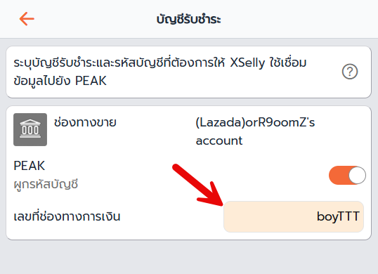 ระบบจะส่งข้อมูลบัญชีรับชำระไปยัง PEAK ในรูปแบบของ “เลขที่ช่องทางการเงิน”