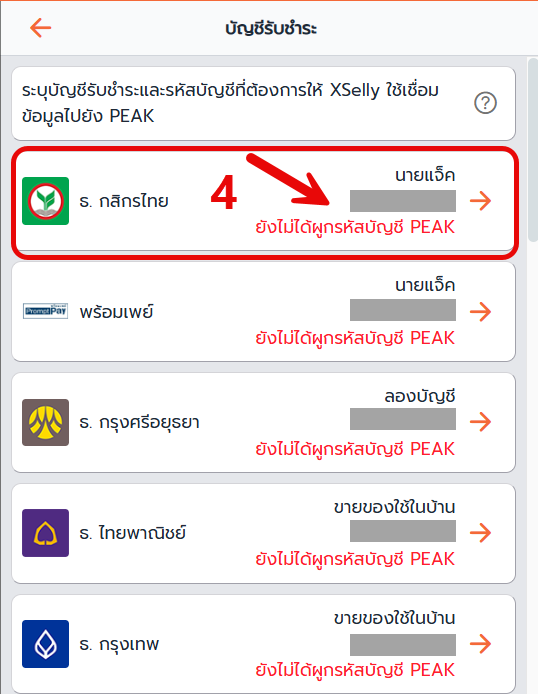 ขั้นตอนที่ 2: ผูกรหัสบัญชี PEAK