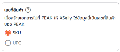 ผู้ใช้งานสามารถเลือกได้เพียง 1 รูปแบบ เพื่อใช้เป็นเลขที่สินค้าใน PEAK