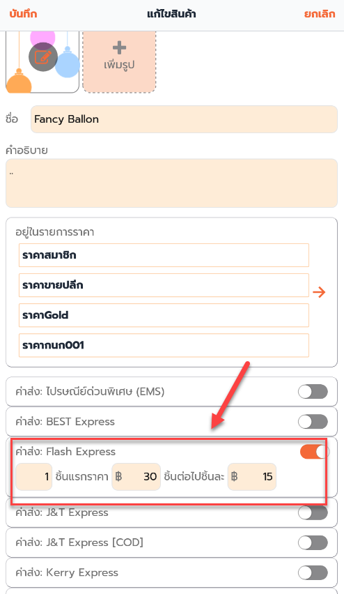 2. ใส่ข้อมูลรายละเอียดสินค้าและเลือกขนส่งที่ต้องการใช้ คำนวณค่าส่งอัตโนมัติ กดบันทึก
