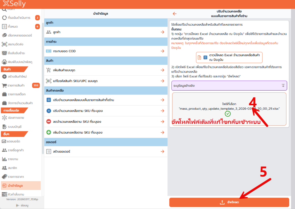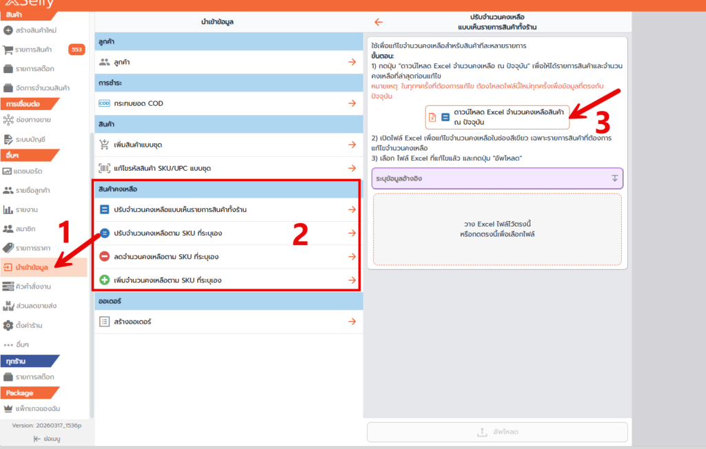 ดาวน์โหลดไฟล์ Excel แก้ไขจำนวนสินค้า แล้วอัปโหลดกลับเข้าระบบ