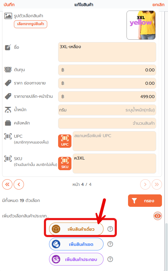 ขั้นตอนการสร้างตัวเลือกสินค้าใหม่ใน XSelly (วิธีที่ 1)
